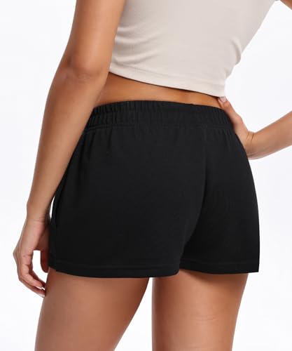 Womens Running Shorts Elastic High Waist Cotton Gym Jogger Lounge Sweat Shorts with Pockets