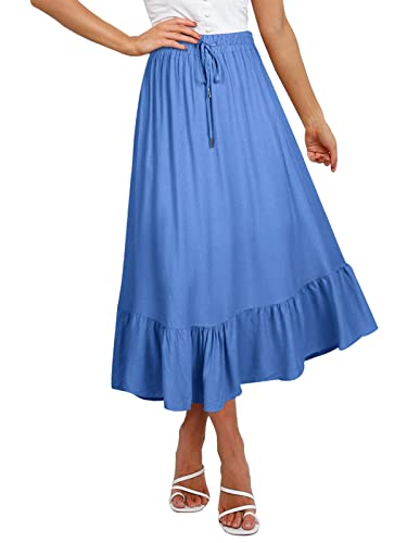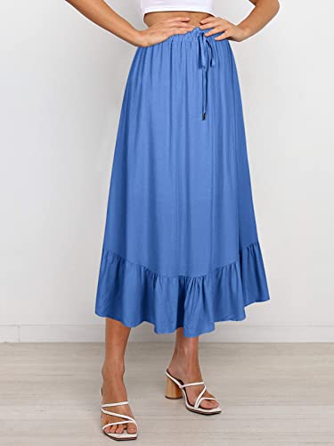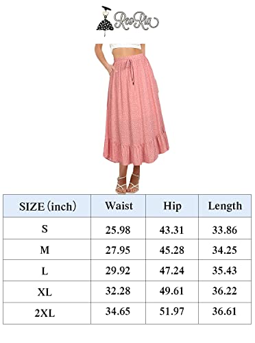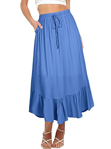 REORIA Women Skirts Elastic High Waist Maxi Skirts for Women Long Length Skirts with Pockets