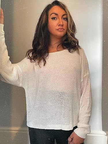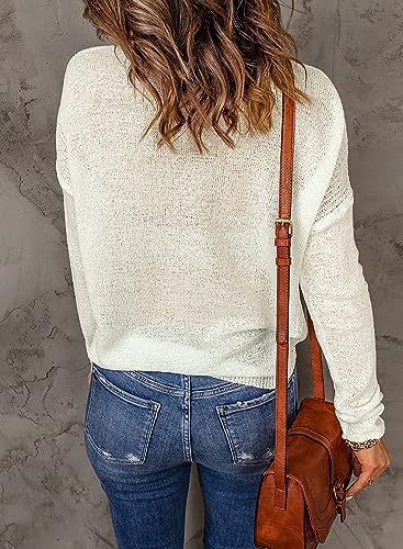 Aleumdr Women Solid Jumpers O Neck Long Sleeve Knitted Sweater Lightweight Loose Pullover Knit Top