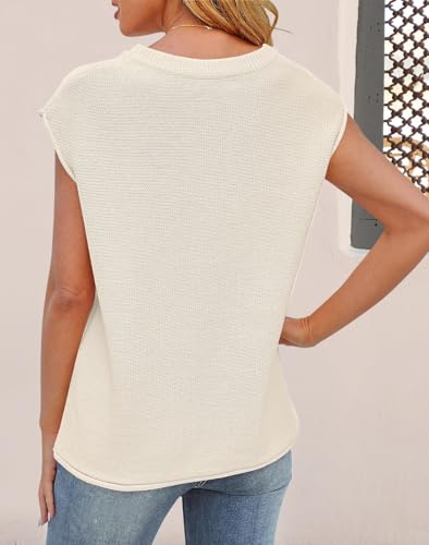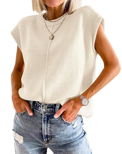 Jhsnjnr Women’s Crew Neck Sweater Vests Tops Loose Cap Sleeve Pullover T Shirts Oversized Knitted Sleeveless Jumpers