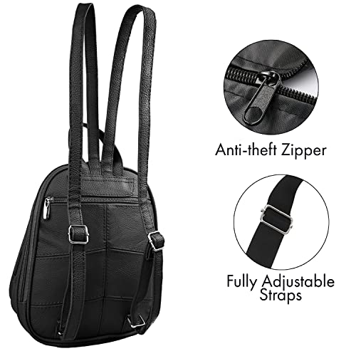 Woodland Leathers women’s fashion backpacks small black backpacks for women with anti theft zipper and hand bag handle, 2 in 1 Sling Backpack
