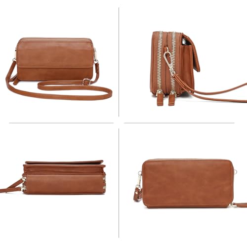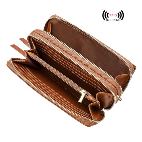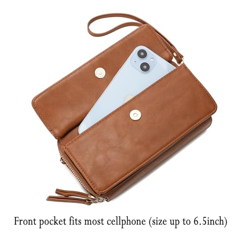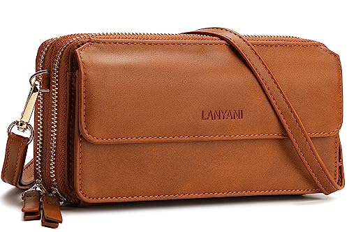 Lanyani RFID Crossbody Wallet Wristlet Purse with Phone Pocket For Women Vegan Leather