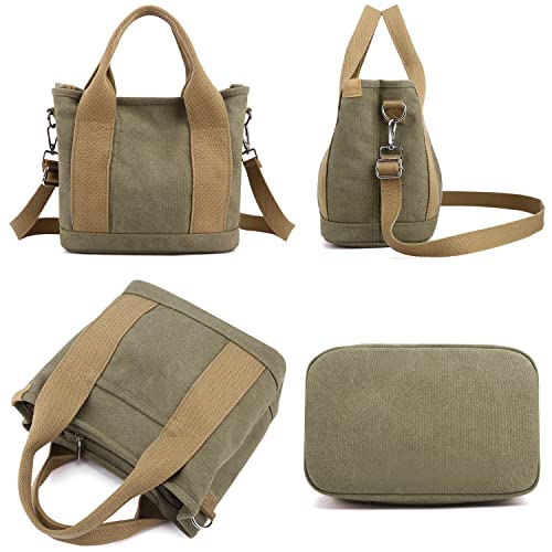 zhongningyifeng Handbag for Women Small Multi-Pockets, Canvas Mini Tote Shoulder Bags with Zipper, Satchel Hobo Bag for School Travel Work Daily Use