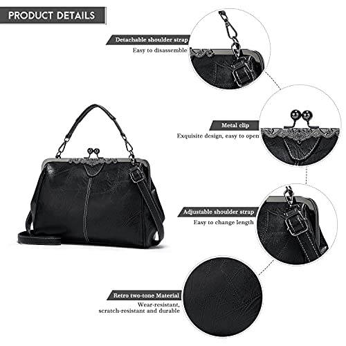 7VSTOHS Women Retro Handbag Vintage Crossbody Bags Top Handle Purse Bag Fashion Shoulder Bags Kiss Lock Messenger Bag