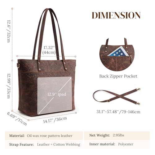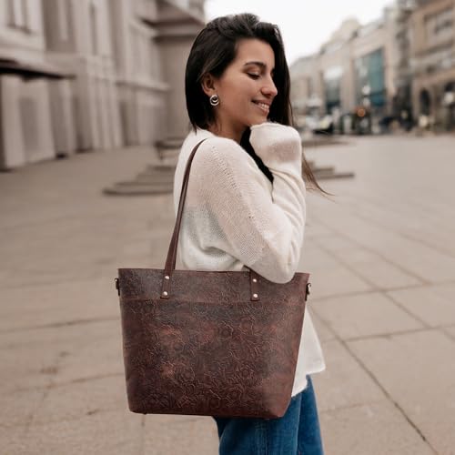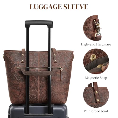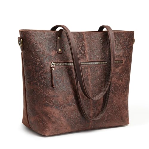 S-ZONE Rose Patterned Leather Tote Crossbody Bag Women Shoulder Handbag Purse with 14 Inch Laptop Sleeve