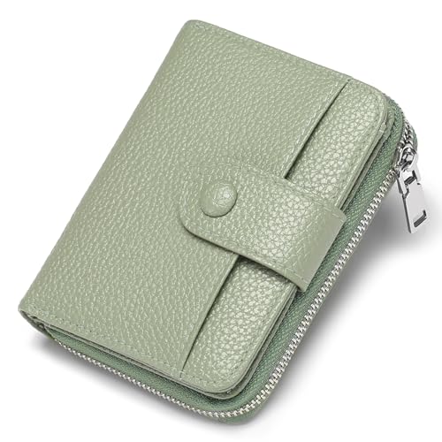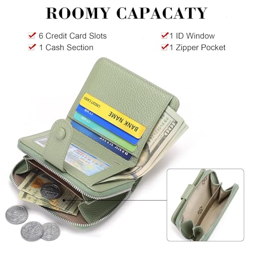 GAEKEAO Small Purses for Women Leather RFID Blocking Bifold Zipper Pocket Wallet Card Case Purse with ID Window