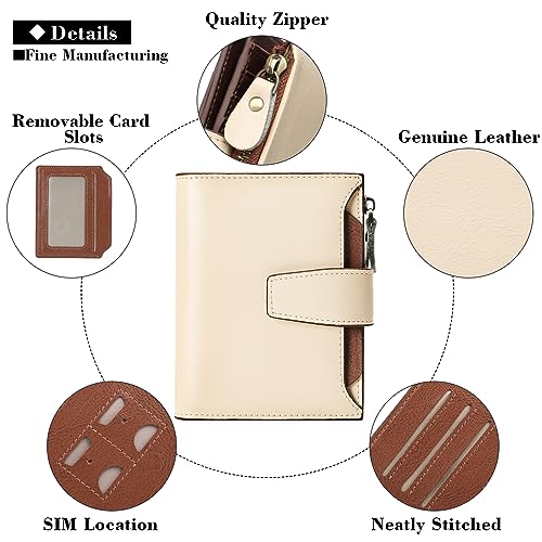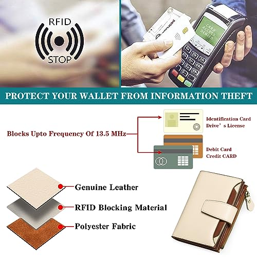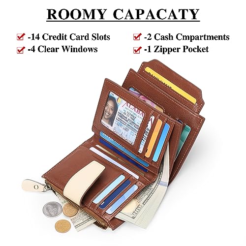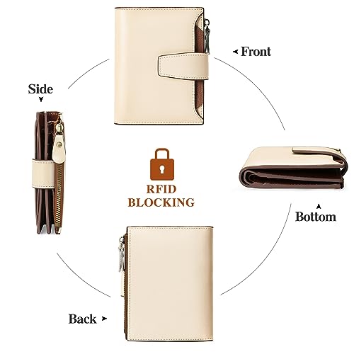 SENDEFN Women’s RFID Blocking Leather Small Compact Bi-fold Zipper Pocket Wallet Card Case Purse with ID Window