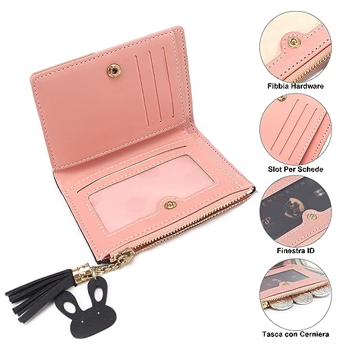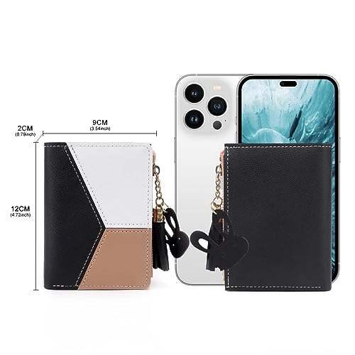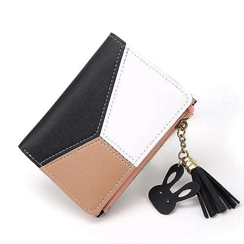 Small Wallets for Women,CHAOFANXI Tassels PU Leather Coins Zipper Pocket Purse for Girls with Rabbit-Shaped Metal Tassels Pendant Purse (Black)