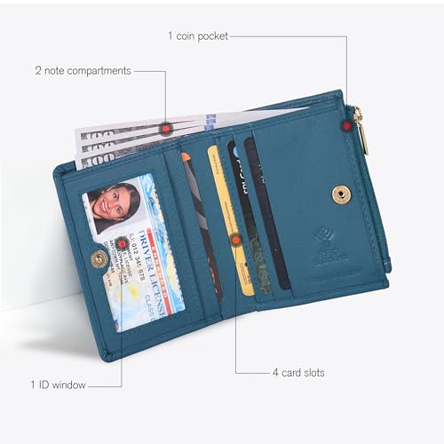 Wallet for Women Full Grain Leather – Small RFID Coin Purse Credit Card & ID Holder for Ladies,Bifold Wallets for Teenager (Nappa Ottanio)