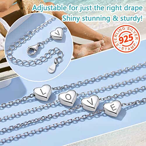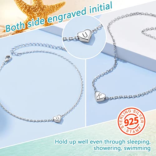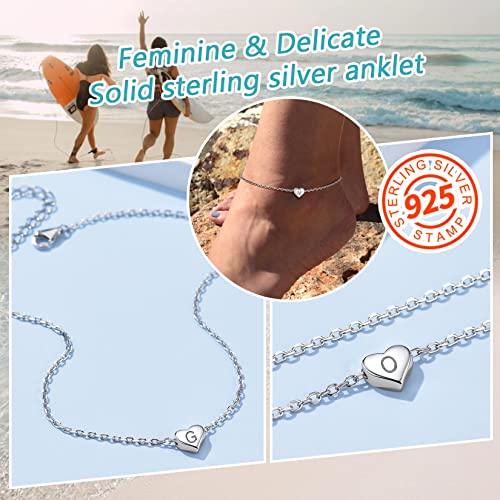ChainsPro Women Anklets Initial Silver, 925 Sterling Silver Ankle Bracelet with Adjustable Chain, A-Z Letter Heart Foot Chain for Beach Summer (Gift Packing)