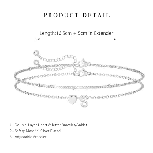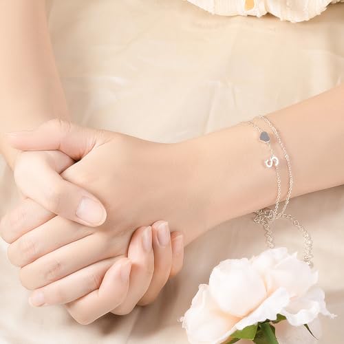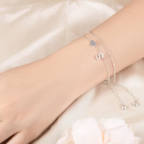 LAXPICOL Initial Letter Bracelets, Adjustable Silver Bracelet For Women,Expandable Double-Layer Letter & Heart Bracelet Jewelry Charm Women Teen Girls Girlfriend
