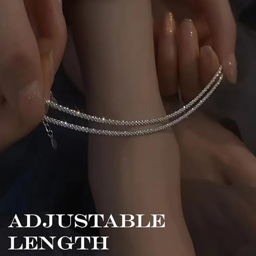 S & S PRODUCTS Women Foot Chain Anklet Sterling Silver Trendy Dainty Waterproof Anklet Shiny Beaded Rope Link Beach Foot Adjustable Chain Jewellery Dainty Layered