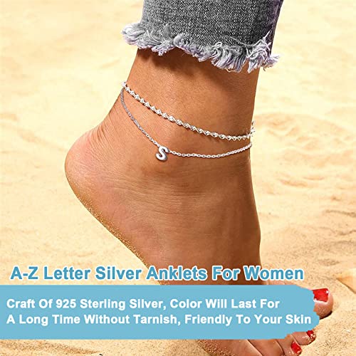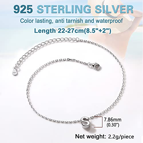 SILVERCUTE Tiny 26 Initials Sterling Silver Ankle Bracelets for Women Girls, Tennis Chain Anklets Feet Jewellery, Come with Gift Box