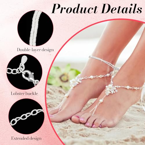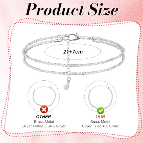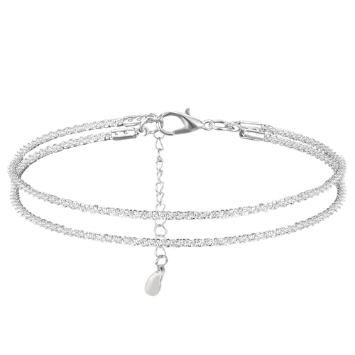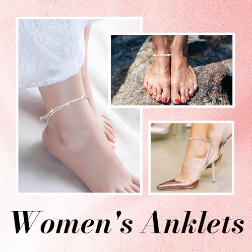 YUFFQOPC Anklets for Women, Dainty Layered Waterproof Adjustable Anklet Set, Layered Ankle Bracelets, Silver Ankle Chain Women’s Anklet Set, Summer Beach Foot Jewelry Gifts for Women