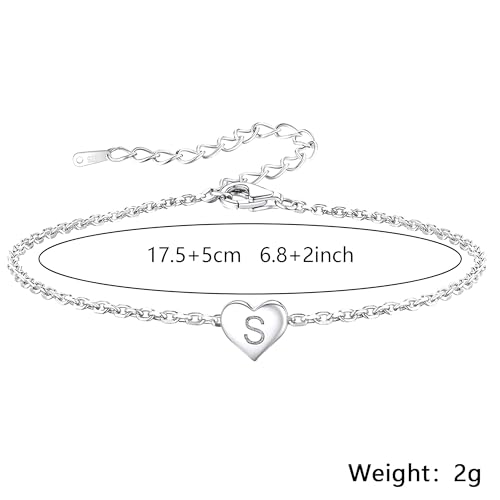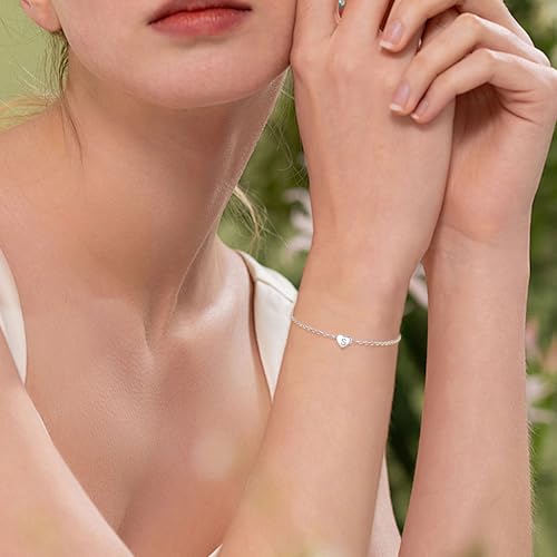 Funny S925 Silver 26 Letter Initial A-Z Heart Pendant Bracelet Gift For Daughter Sisters Friends Mum Birthday Christmas Adjustable Jewellery