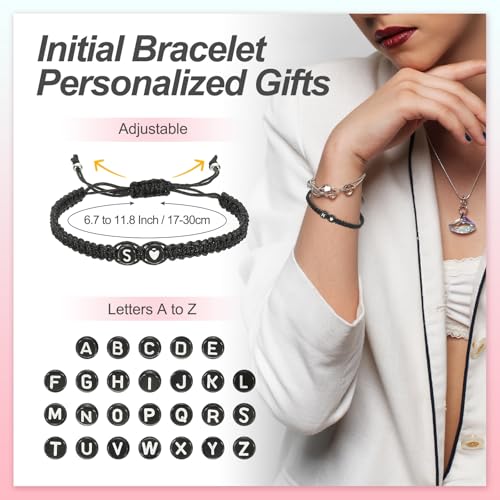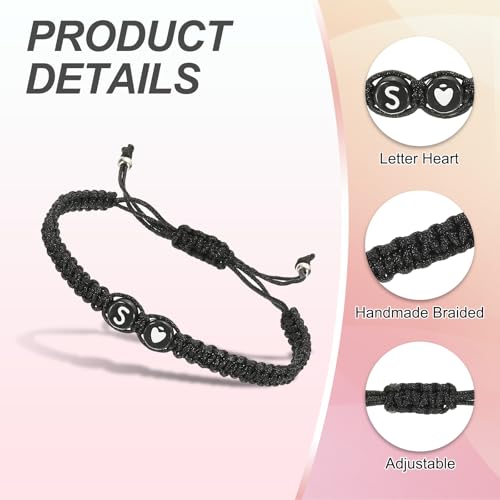 PATIKIL Initial Bracelet, Adjustable Alphabet Heart Braided Black Rope Bracelet Matching Couple Initial Bracelet Personalized Gifts