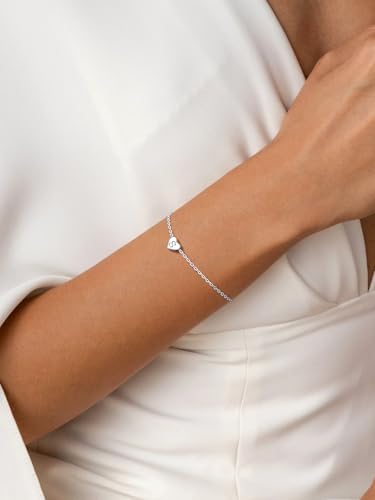 Silvora S925 Sterling Silver Love Heart Initial Bracelet, Letter Alphabet A-Z Adjustable Jewellery Gift for Women Girls Sisters Friends Mom Daughter with Gift Box