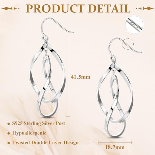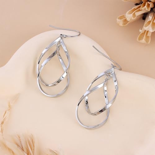 Adramata Silver Drop Earrings for Women, S925 Sterling Silver Post Dangle Earrings – Designer Statement Earrings Layer Dangle Earrings for Girls Hypoallergenic Silver/Gold Teardrop Earrings