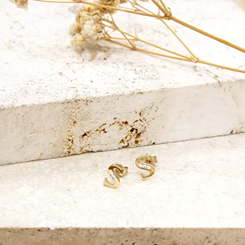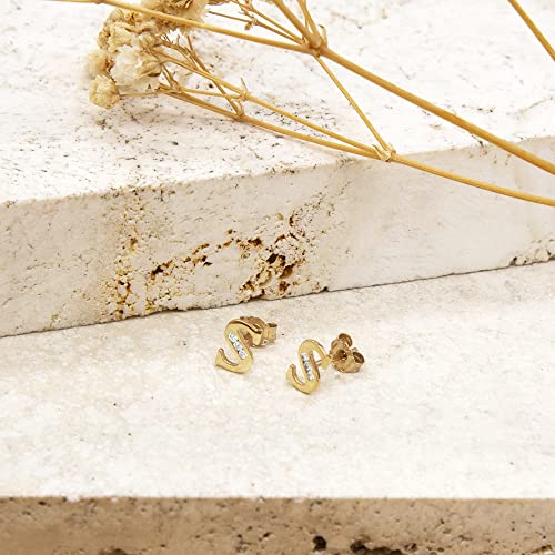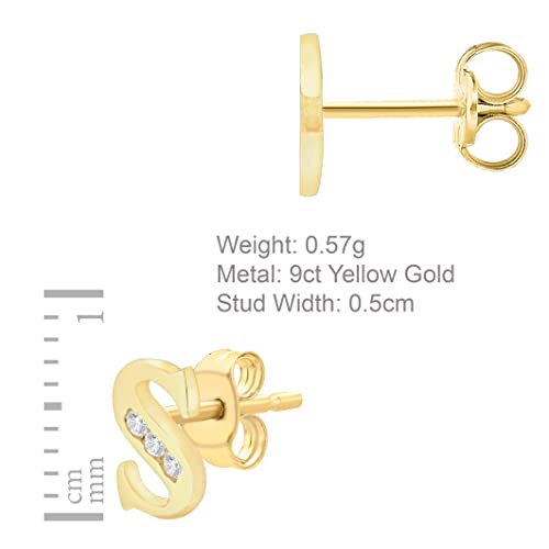 CARISSIMA Women’s 9 ct Yellow Gold Cubic Zirconia S Initial Stud Earrings