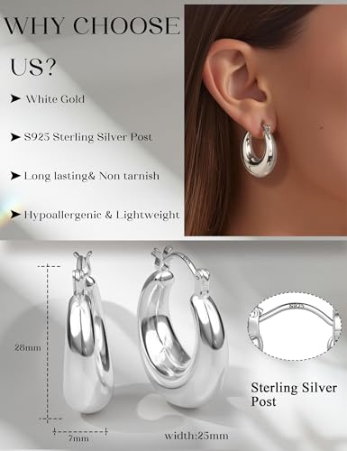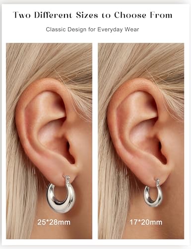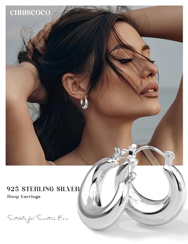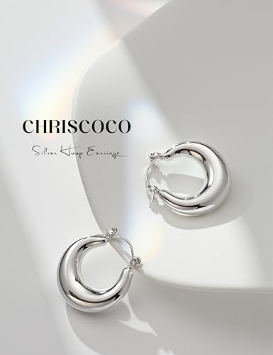 Chriscoco Sterling Silver Hoop Earrings for Women Chunky Gold Silver Hoop Earrings, 14K Gold Plated Hypoallergenic Huggie Hoops Earring Lightweight Thick Earring for Women Girls