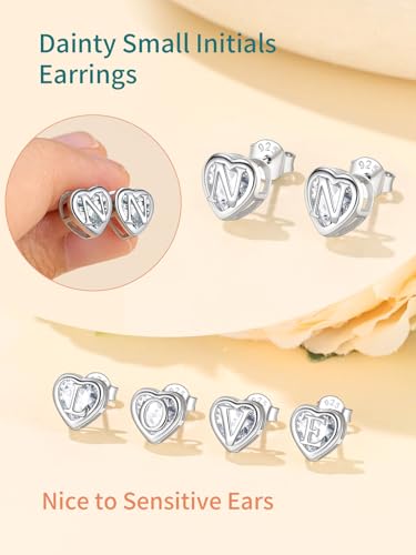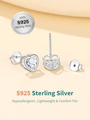 Supcare Sterling Silver Letter Earrings for Women, 925 Silver Heart Initial Ear Studs Hypoallergenic Earring – With Gift Packaging