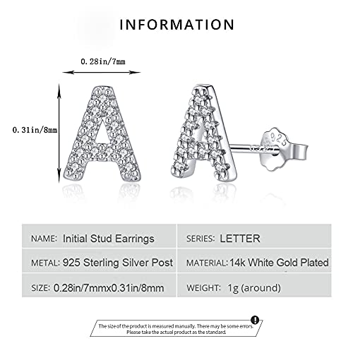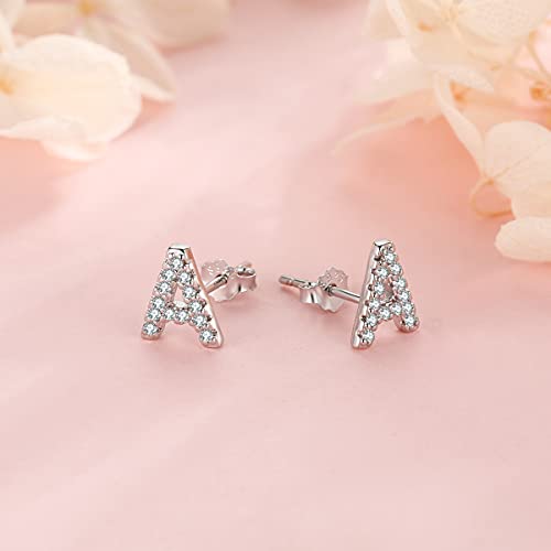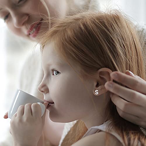 TIZU Initial Stud Earrings for Girls Hypoallergenic S925 Sterling Silver Post White Gold Plated Alphabet Letter Earrings for Women kids Gifts