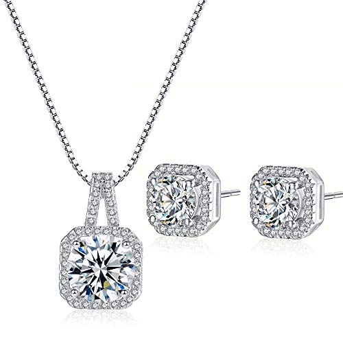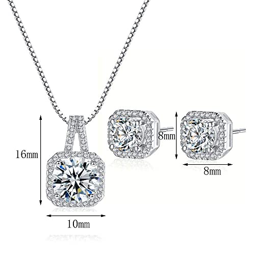 925 Sterling Silver Women Necklace Earrings Jewellery Set Cubic Zirconia Gift Box for Party Wedding Vacation Christmas Xmas Gifts