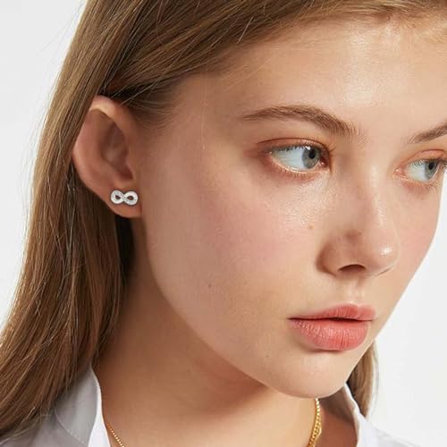 Jewellery Sets 925 Sterling Silver Necklace Bracelet and Earrings Studs for Women Elegant Infinity Symbol Pendant Bracelet Earrins Adjustable Necklace Bracelet Set Fashion Earrings with Cubic Zirconia