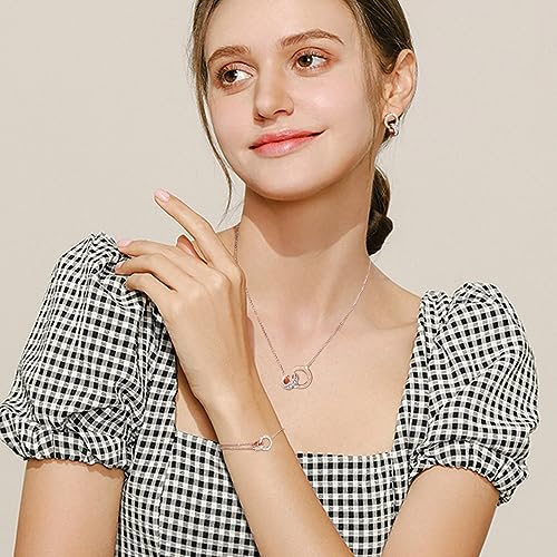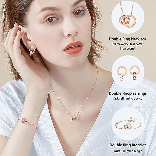 KBRPEY Jewellery Set for Women Necklace Bracelet and Earrings Set Double Circle Pendant Cubic Zirconia Round Interlocking Pendant Jewellery gifts for Her Wife Rose Gold