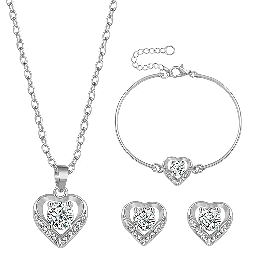 Rumnoke Jewellery Set for Women Cubic Zirconia Jewelry Set Necklace Bracelet and Earrings Set Gifts for Women