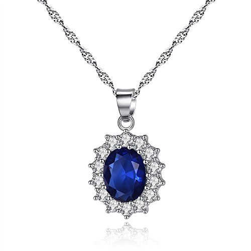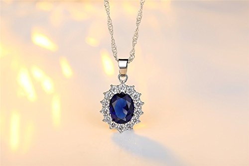 Women Princess Blue Sapphire Jewellery Pendant Necklace Earrings Set for Women Princess Diana Kate Middleton’s Jewellery Set