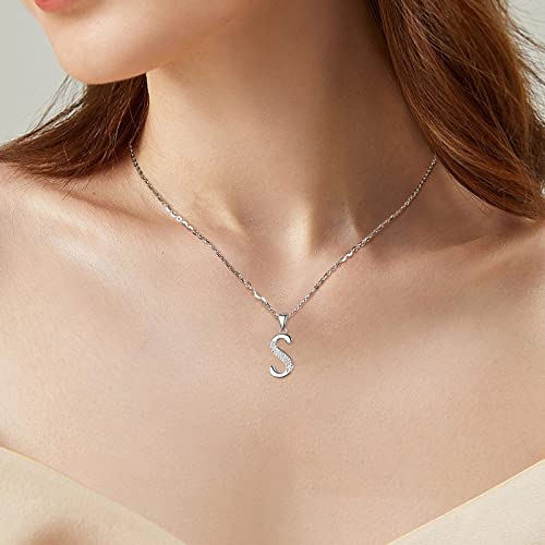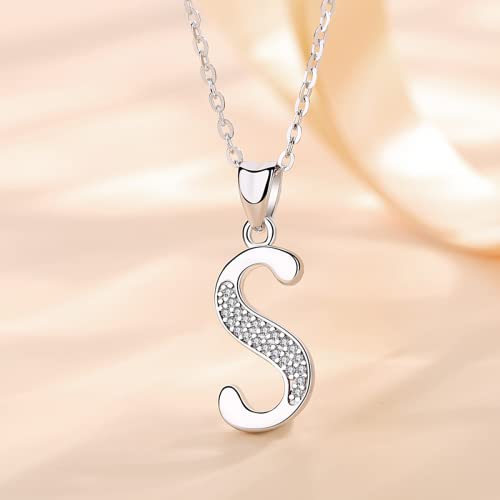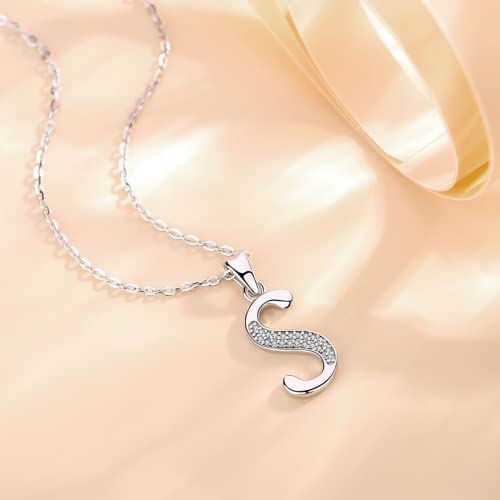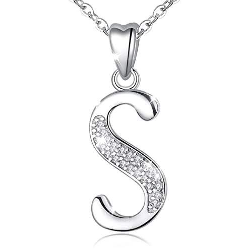 Initial Necklace Sterling Silver Letter Necklace Letter Alphabet Personalised Pendant Jewellery with Cubic Zirconia Gifts for Women Girls AEONSLOVE