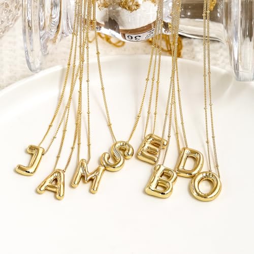 SYYHSYAL Gold Bubble Letter Necklace for Women,18k Gold Plated Balloon Initial Letter Pendant Necklace Charm Pendant Necklaces Gold Jewelry Birthday Gifts Women Teen Her Mom Grandma Wife Sister