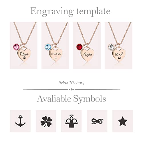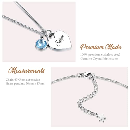 TMT Personalised necklace with Birthstone heart pendant gift box | initial heart necklace engraved for Daughter Mum Best Friend Girlfriend | Birthday gift for 18th 21th 30th 16th 13th