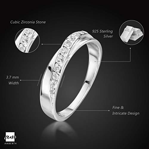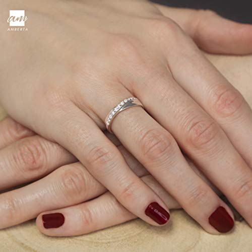 Amberta Women’s 925 Sterling Silver Ring Crossover Band with Zirconia Stones