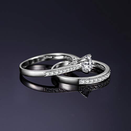 JewelryPalace 1ct Simulated Diamond Engagement Rings for Women, 14k White Yellow Rose Gold Plated 925 Sterling Silver Promise Rings for her, Cubic Zirconia Anniversary Wedding Eternity Band Ring Set