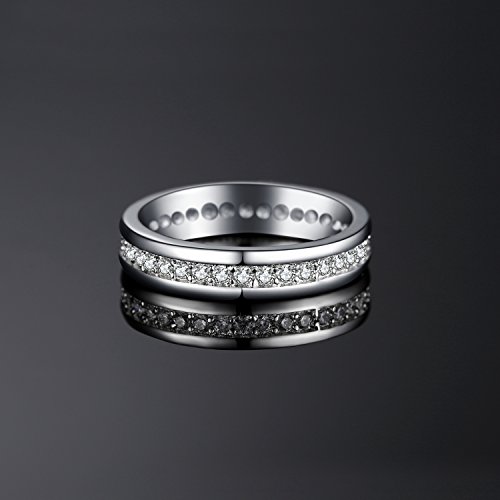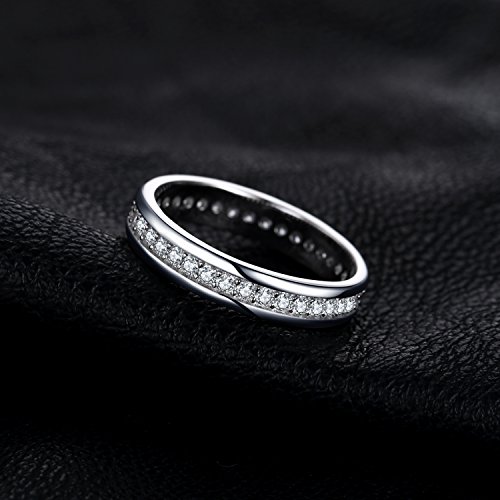 JewelryPalace White Gold Plated 925 Sterling Silver Rings for Women, Channel Set Wedding Band Eternity Ring, Anniversary CZ Simulated Diamond Ring, Girls Womens Jewellery Gifts