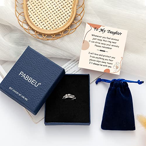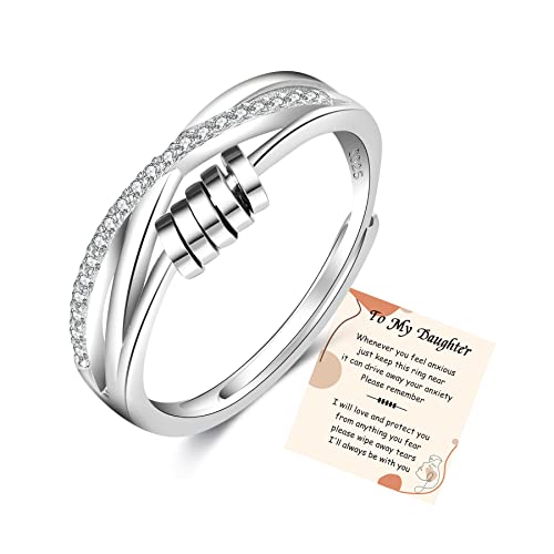 PABBEU To My Daughter Fidget Ring Sterling Silver Anxiety Ring Adjustable Fidget Ring Stress Spinner Rings with Beads Cubic Zircon Anxiety Ring for Daughter Women Girls