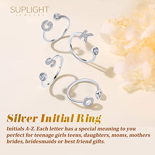 Suplight 925 Sterling Silver CZ Initial Ring, Dainty Adjustable Open A-Z Alphabet Letter Rings for Women (with Gift Box)