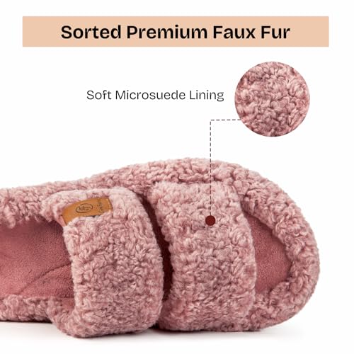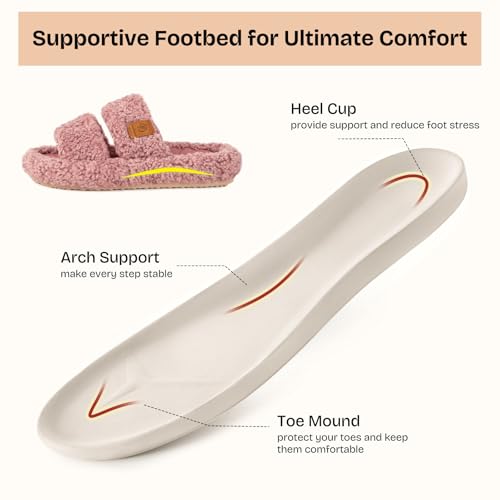EverFoams Womens Fuzzy Open-toe Slippers Soft Comfy Memory Foam Indoor House Shoes