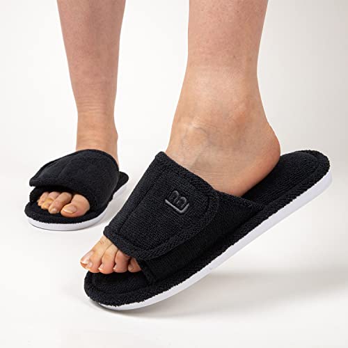 LongBay Women’s Open Toe Slippers Diabetic Memory Foam Slip On Summer Slippers with Adjustable Strap House Shoes for Indoor Bedroom