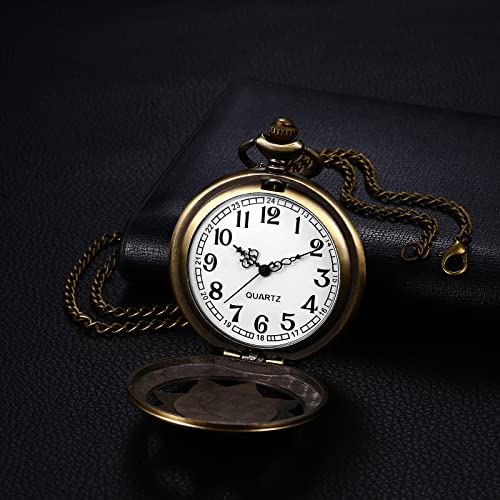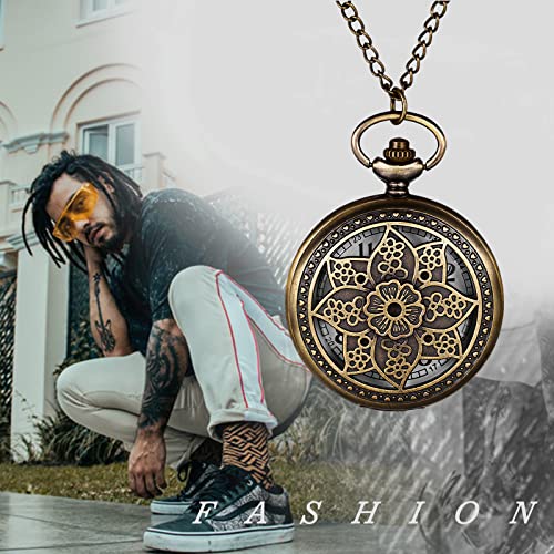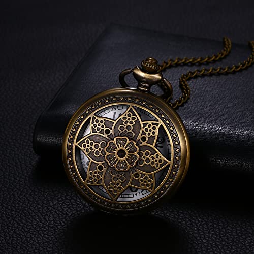 Avaner Hollow Out Pocket Watches: Bronze Flower Analog Quartz Pocket Watch with Chain for Men and Women