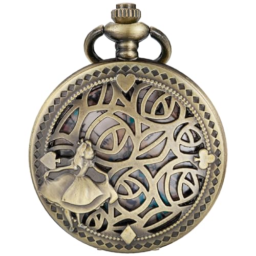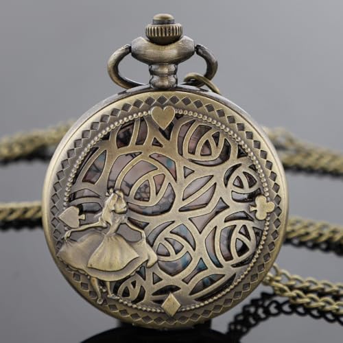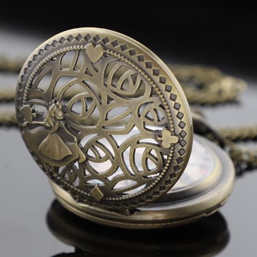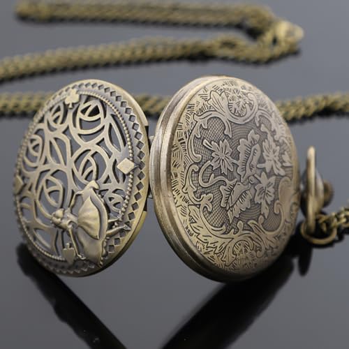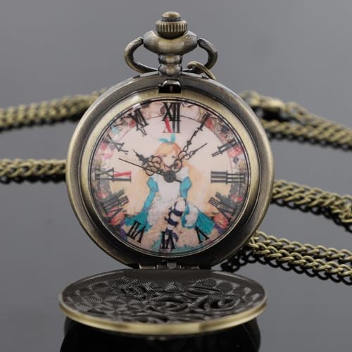 Tiong Alice in Wonderland Pocket Watch Alice Dial Roman Numerals Quartz Pocket Watches with Chain Christmas Birthday Gifts