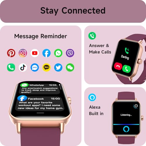 Smart Watches for Women(Answer/Make Call), Alexa Built-in 1.8″ HD Ladies Smartwatch with Heart Rate/SpO2/Sleep Monitor, 110+Sports, IP68 Step Counter Fitness Tracker (Deep Purple, S/M/L)