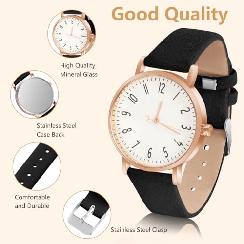 OFFCUP Women’s Leather Quartz Watch, Leather Strap Ladies Watches, Analog Quartz Watches with White Dial, 3 Hand, Premium Fashion Wrist Watch for Women Ladies Girls