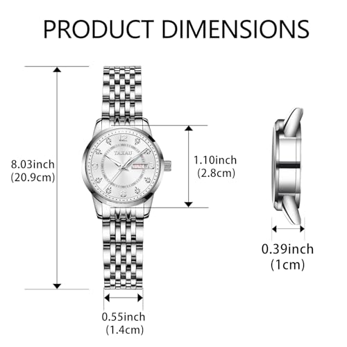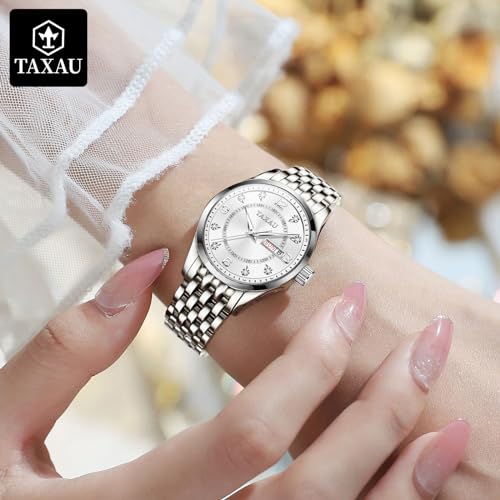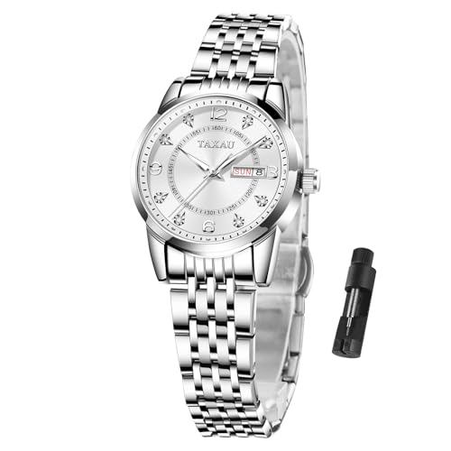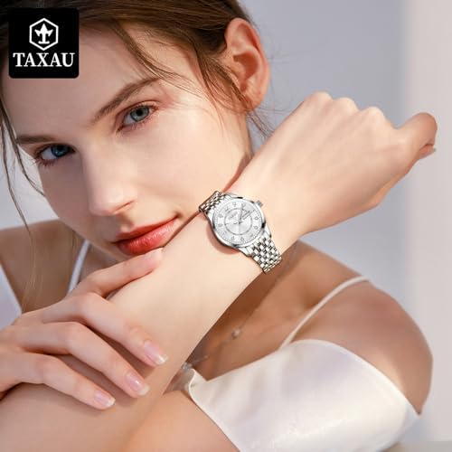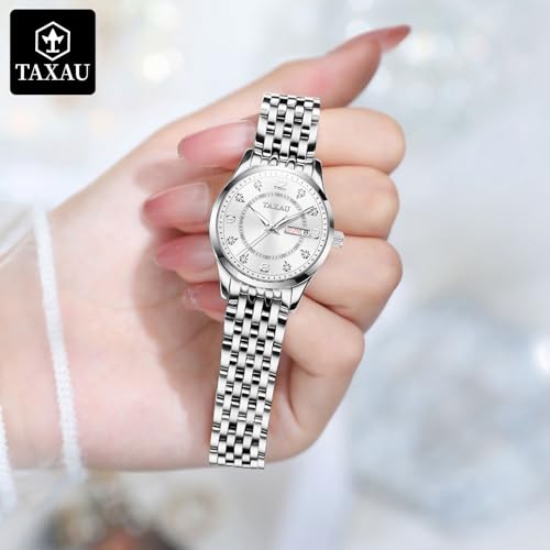 Taxau Ladies Watches Classic Womens Watch – Stainless Steel Strap Waterproof Wrist Watches for Women – Diamond Analog Quartz Watch with Date