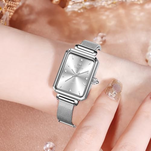 Taxau Square Ladies Watches Quartz Women’s Dress Watch Elegant Stainless Steel Mesh Belt Waterproof Ladies’ Watches