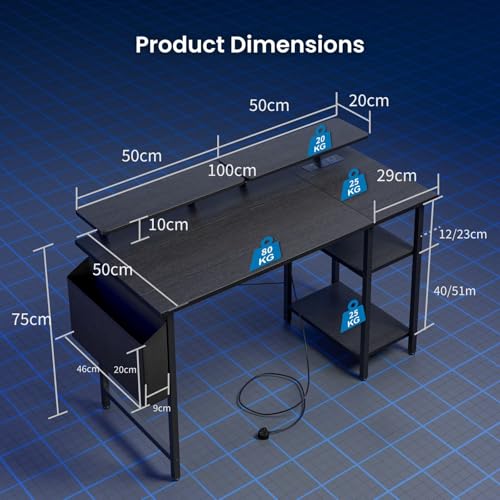 Be the first to review “DOMSHOCT Gaming Desk with LED Lights & Power Outlets, Reversible Computer Desk with Storage Shelves & Dual Monitor Stands, for Home Office & Study, 100×50cm Black”