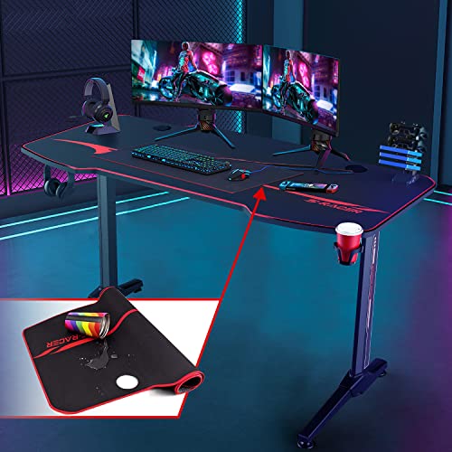 Homall Gaming Desk 140 x 60cm Large Computer Table PC Gaming Desk for Home Office, Metal Frame Gaming Table with Cable Tray and Headphone Hook, Black
