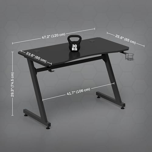 Spacious design: This computer desk features a large worktop, a side cup holder and headphone hook. Keeps all your devices and other gaming essentials conveniently close to hand